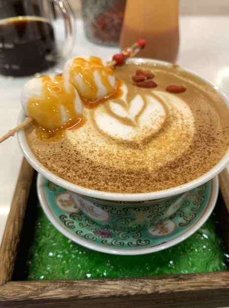 枸杞、糯米丸子与拿铁,这种搭配我只敢在梦里想一想。/潮济堂