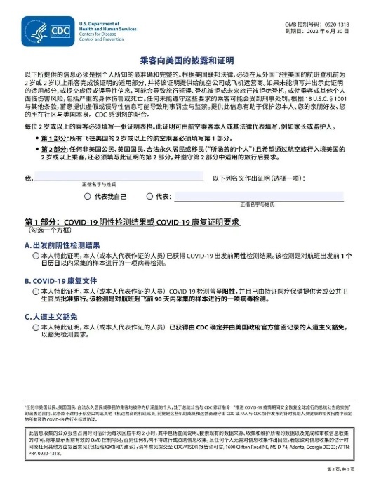 根据CDC最新公告,对于非美国公民与移民,在入境美国前及抵达美国后必须拥有、提供、接受: