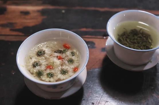 除了传统茶水,很多茶馆也提供柠檬茶、菊花茶这种“不正式”的花草茶,再放上两颗冰糖,喝不惯茶水的小朋友,或者平时不爱喝茶的人,也能在茶馆中找到合适的饮品。