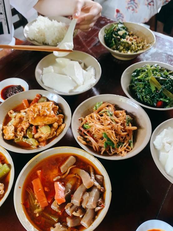 毗邻购物中心的大慈寺内有个大慈茶社,可以喝茶听戏,如果饿了食堂还有素斋提供 ,豆花饭、凉拌三丝、耙耙菜、汤圆……种类丰富,搭配得有滋有味。