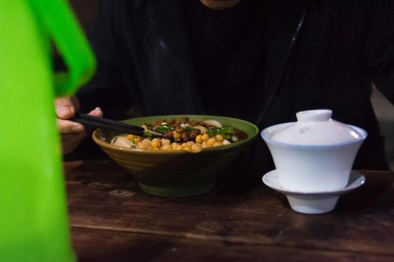 有些茶馆会提供简单的面条和饺子,下午喝茶要是饿了,可以喊老板给你煮一两面,浅浅填个肚子。如果恰巧碰上卖豆花凉面的担子,也可以吃上一碗咸香麻辣的豆花,或者来碗凉粉凉面。