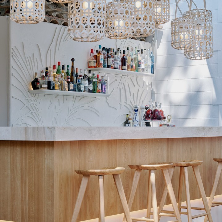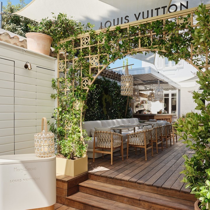 以 LV 一贯秉承的「旅行精神」为起点,低矮的建筑采用了大片的白色装修,与一系列纯白色的家具互相映衬,打造出充满现代感的南法风情。
