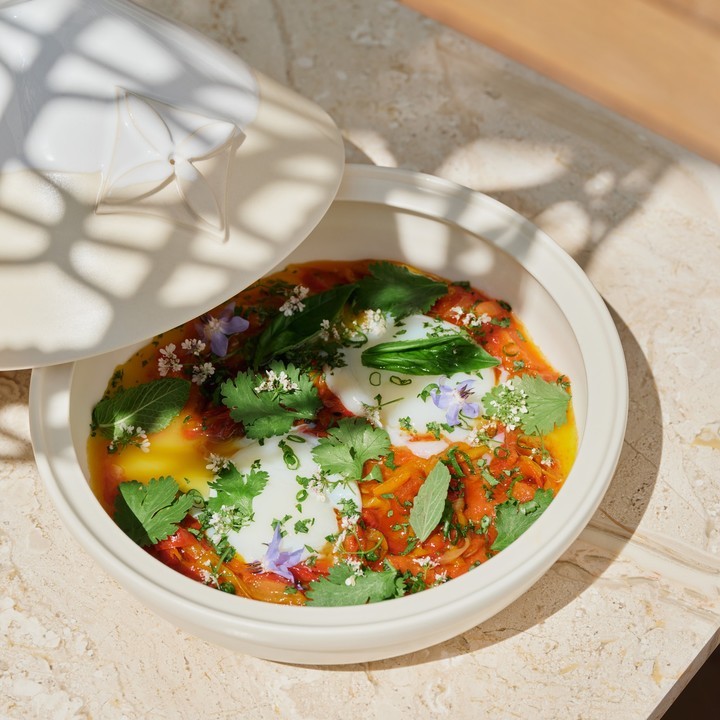 会看到热气腾腾的焖菜,被放在北非塔吉锅端出来。