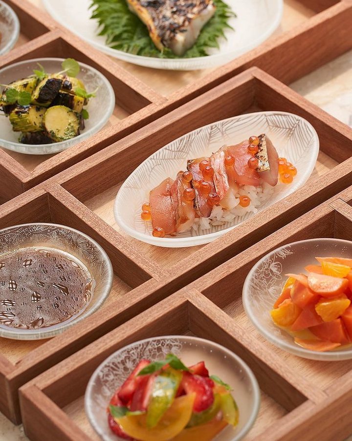 甚至连餐具的设计,也是 Mory Sacko 从日本铁路便当中获得灵感订制出来。