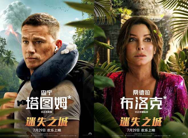 《迷失之城》由桑德拉·布洛克、查宁·塔图姆、丹尼尔·雷德克里夫、布拉德·皮特等出演,将于7月29日全国院线上映。