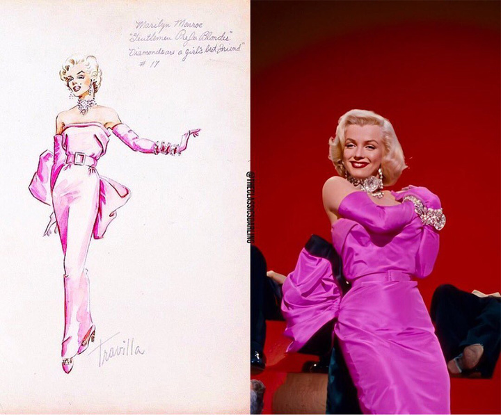 1953 年,年仅 27 岁的玛丽莲·梦露接下了此后一生的代表作——《绅士爱美人》。电影中有一个经典画面——梦露穿着芭比粉缎面礼服裙,在舞台上演唱《钻石是女孩最好的朋友》。