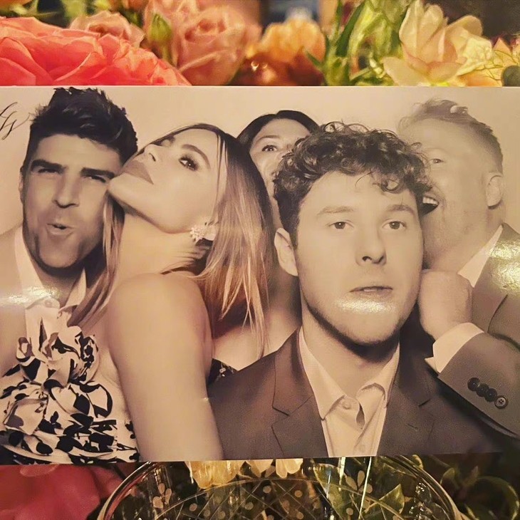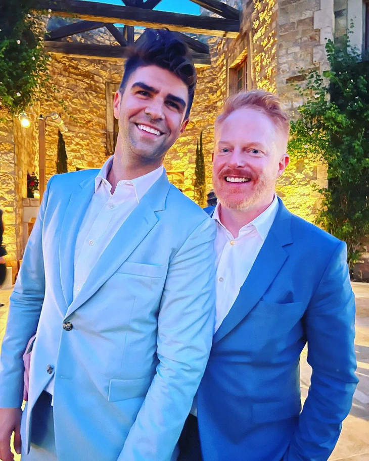 新郎Wells Adams则一身Gucci礼服,矜贵帅气。