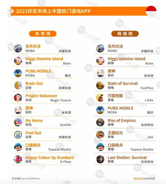 印尼一直是中国游戏厂商比较在意的出海市场。截至2021年数据,印尼游戏榜Google Play Store TOP500 显示,免费榜中,中国游戏占据约 18%,畅销榜中,中国游戏占比 36%。中国游戏在印尼市场受欢迎程度可见一斑。