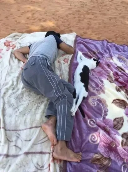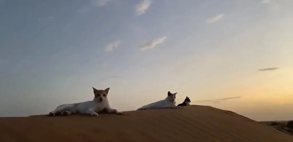 猫咪们似乎也对这种“散养”模式十分满意,在沙漠中自由自在的感觉也是“喵生”圆满了~