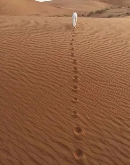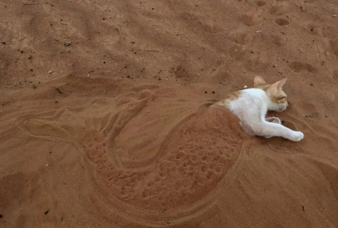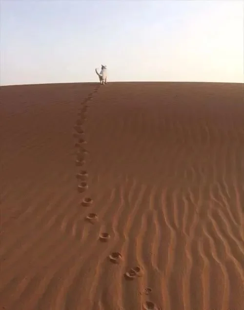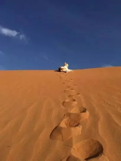 而自家爱猫在面对这么一大片沙漠时,实在是显得有些孤单...