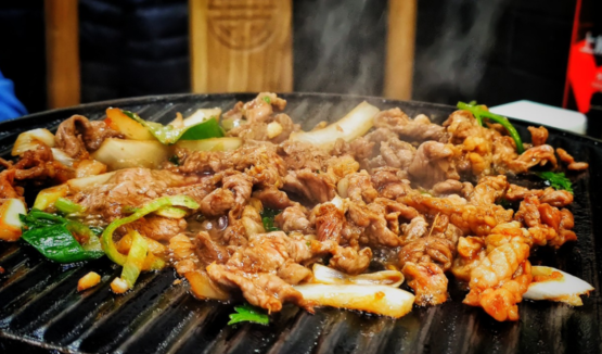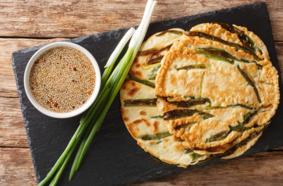 韩国料理里的“葱煎饼”,做法很像“糊塌子”,将整根的葱排在锅内,浇上鸡蛋面糊,摊熟即成,还可以加入虾仁、蛤蜊等海鲜。