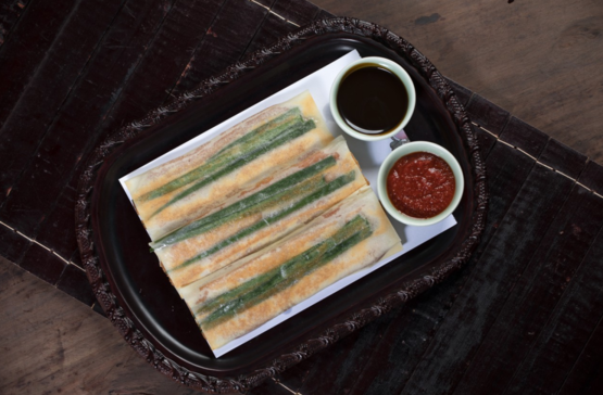 杭州的早餐摊主角葱包烩儿,做法比起葱油饼要简单些,将油条、成根的小葱裹在薄面饼内,包成春卷形,摊在铁锅上边压边烤,直到饼皮香脆、葱香满溢,再涂上各家摊主秘制的酱料,又解馋又饱腹。