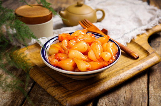 除了和面食搭配,葱家族里的“胡葱”(Allium ascalonicum L.)还是特殊的米饭杀手。胡葱的外形很有特色,地面上方的部分像葱,地面以下的簇生鳞茎有点像小蒜头,红褐色的外皮裹着白色的肉质鳞片,所以又被称为蒜葱、红葱头。胡葱的辛辣味不像大葱那么浓,有独特的香味,中国台湾卤肉饭里的灵魂配料“红葱酥”,就是用胡葱的鳞茎油炸制成的。