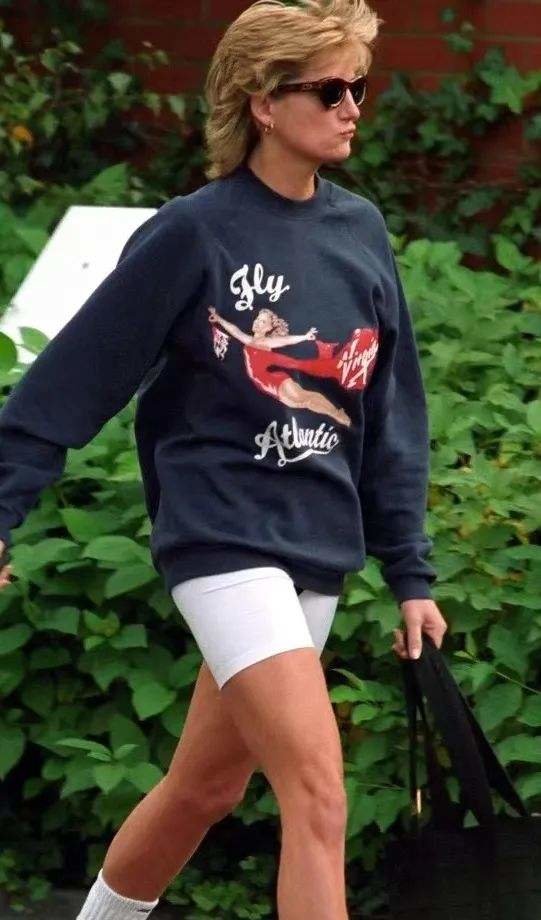 时尚圈里来回倒腾的小把戏,她早就玩过了。近两年明星模特们热衷的“卫衣+骑行裤”标准出街法,就是在copy 30年前的戴安娜——运动时尚的始祖。