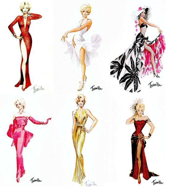 这两件礼服背后的功臣是美国知名电影服装设计师William Travilla,在梦露的职业生涯里,William为她打造了很多经典造型。