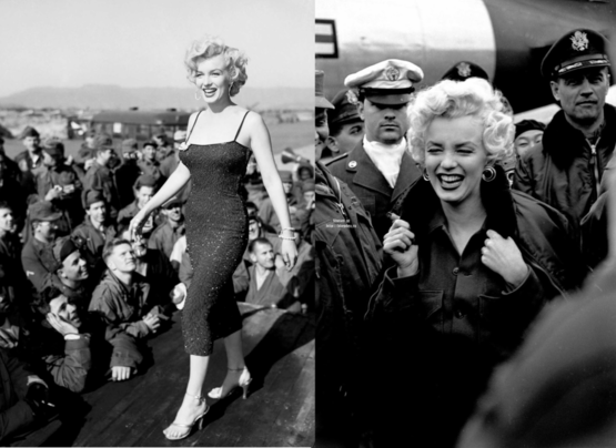 在《七年之痒》,也就是那张经典的捂住裙角的拍摄现场,为了炒作,剧组找来了几十位男性摄影师,拍摄现场围满了男人,包括她的第二任丈夫。