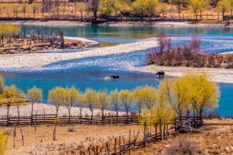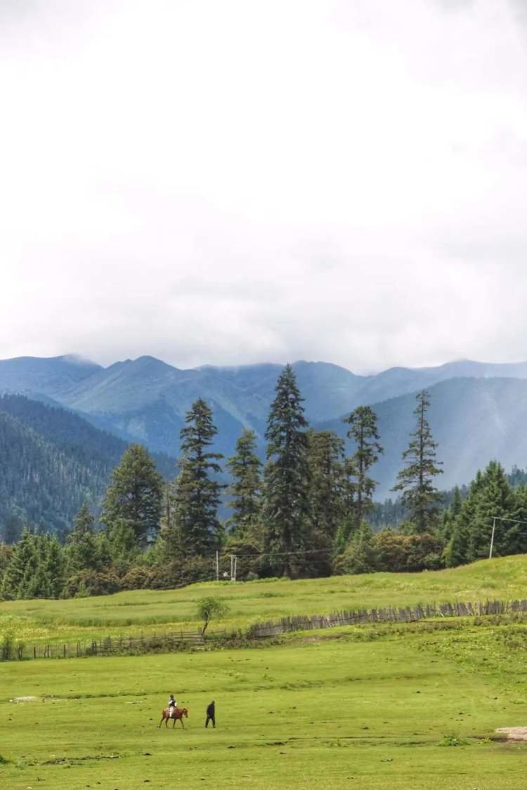 瑞士有阿尔卑斯山,但林芝的南迦巴瓦雪山丝毫不输。林芝的画面,是任何一个世界级画家都画不出来的。远处的雪山连绵,连接着高原草甸,穿着藏族服饰的牧马人骑着马匹走来,守护着那座带着栅栏的房屋。“纯粹,极致地纯粹”,脑海里只剩这句话,其余的全是苍白。