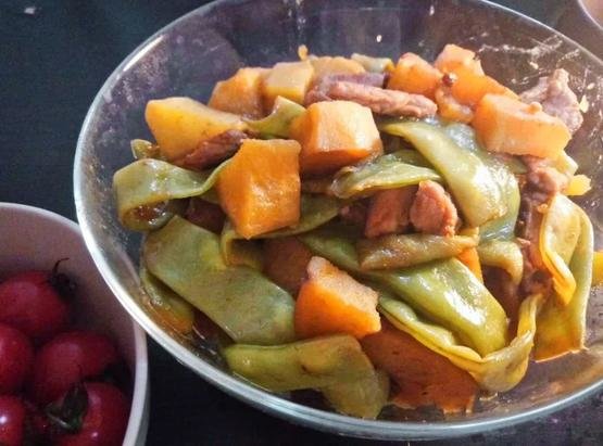 五花肉炖油豆角地瓜|煎茶君摄