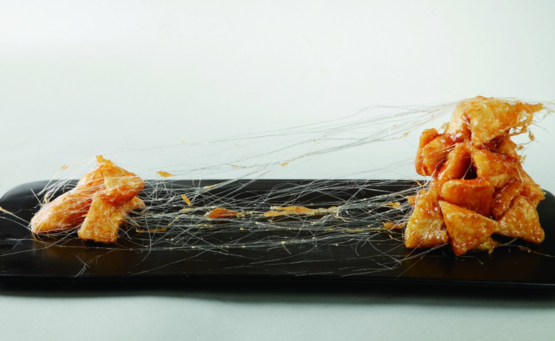 在咸鲜立命的东北菜江湖中,拔丝地瓜是独领风骚的甜口菜领袖。滚刀块地瓜炸熟,以滚烫的糖稀包裹,装盘与一碗清水上桌,趁着热乎劲儿,拔出几十公分的糖丝来,进口甘甜酥脆,回口软糯香甜,再粗犷的汉子也要被甜到缴械。