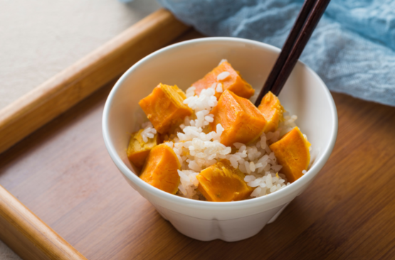 红薯和大米一起煮成红薯饭,粗细粮搭配营养更均衡。