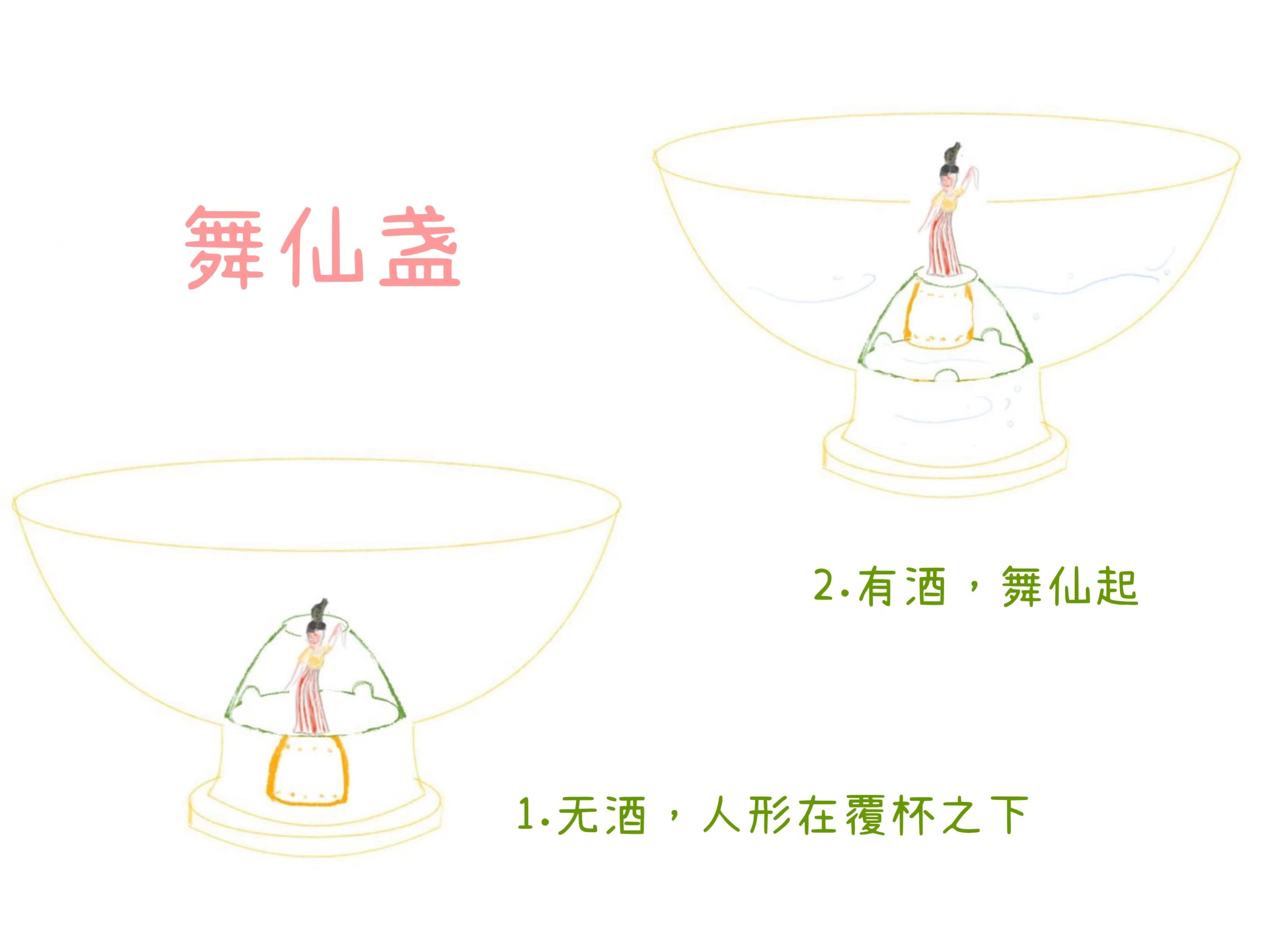 《云仙散录》引《逢原记》曰李适之有酒器九品,舞仙盏是其中之一:“舞仙盏有关捩,酒满则仙人出舞,瑞香毬子落盏外。”仙人长风吹月度海来,云垂余发,霞拖广袂……古人醉眼朦胧里一个可以触摸的长生梦。