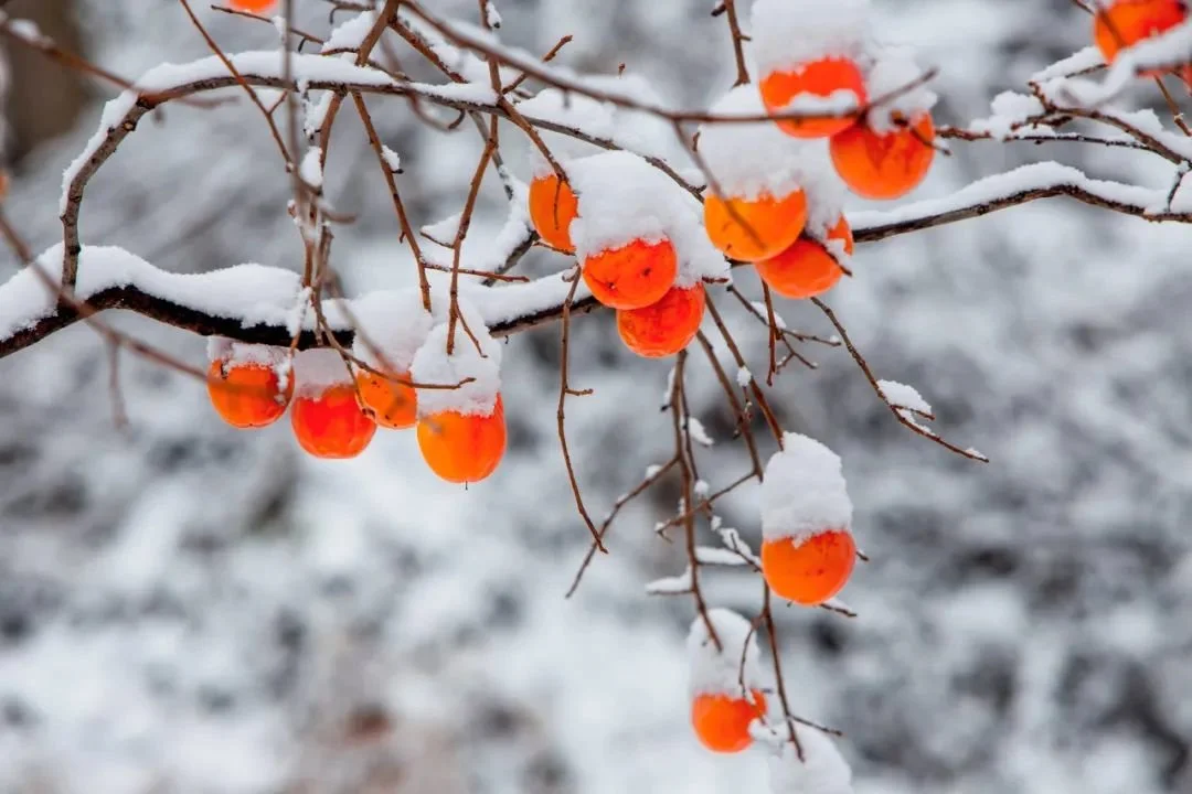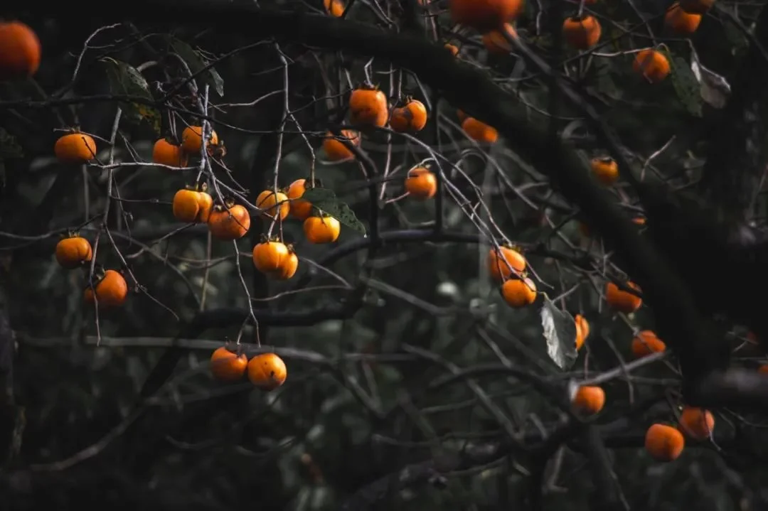 古诗之中,村暗桑枝合,林红柿子繁;柿叶翻红霜景秋,碧天如水倚红楼······这抹橙红惊艳了几千年的光阴。