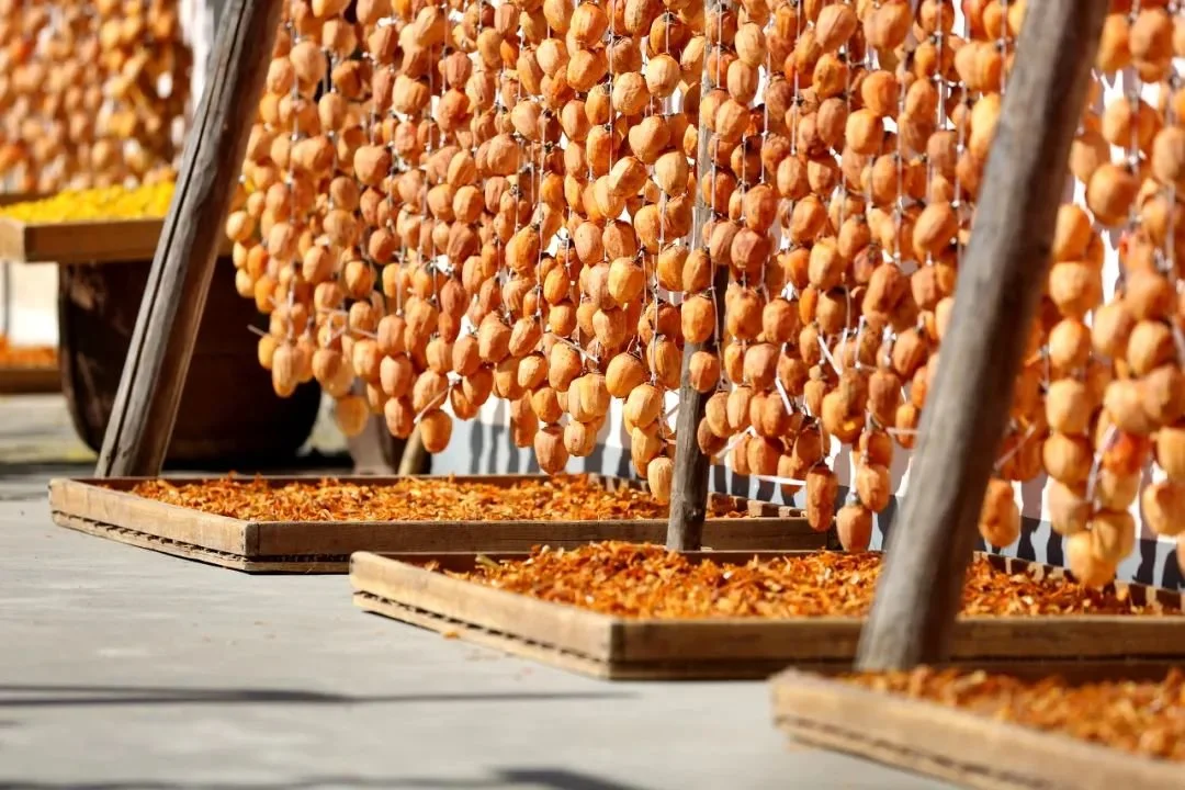 柿果虽美,但一般都在霜降前后集中收获,却不耐储存。古人发现,将柿子串在一起晾挂成柿饼后,可以保存更长时间,柿饼随之开始风靡。