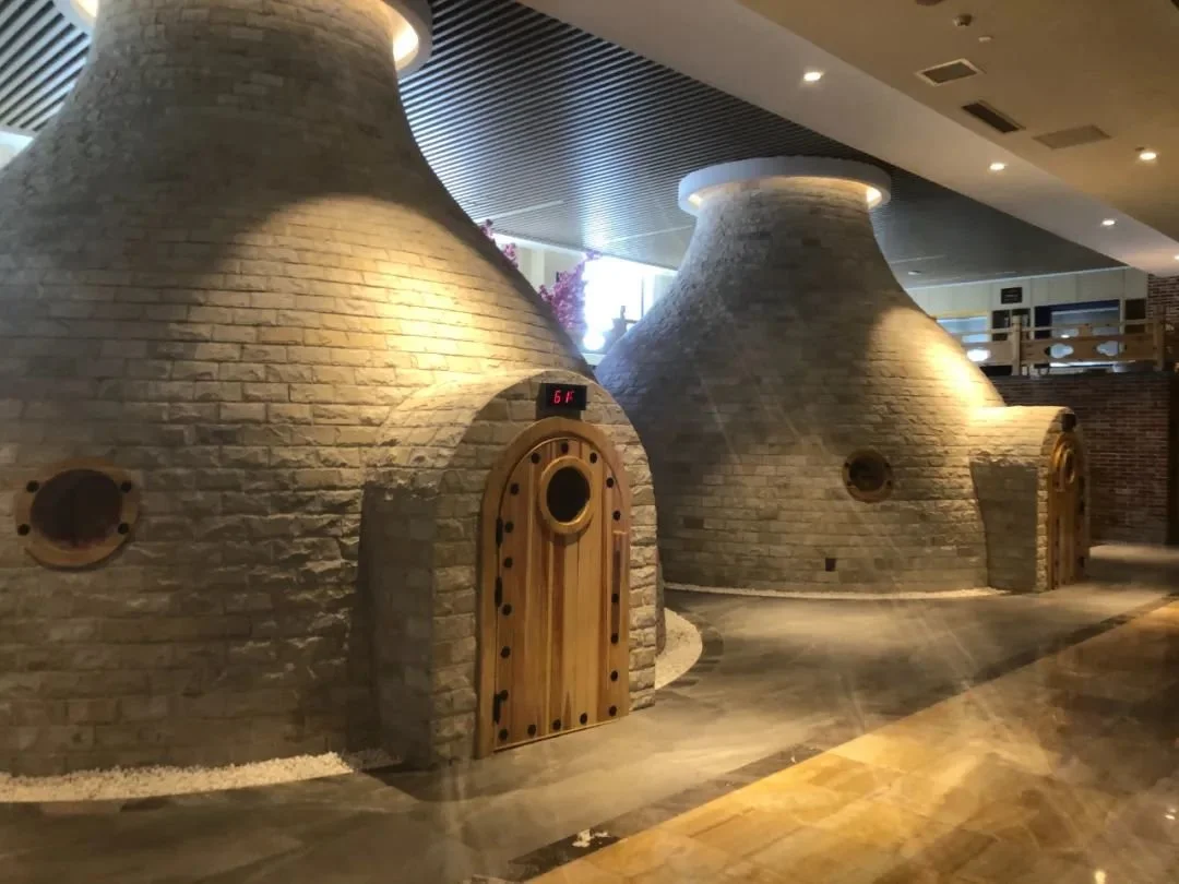 接下来的泡澡环节也不简单。眼前出现的几个池子形状各异,有的呈现乳白色,还有的雾气蒸腾,宛如仙境,旁边标牌上写“含有丰富硒元素,长期泡浴能增强人体免疫力”。