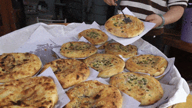 喜洲粑粑又称破酥粑粑,第一口下去,粑粑边缘的酥脆确实会让人想起烧饼,但咬到中间会发现面饼非常有嚼劲,有种吃比萨的感觉,你就知道为什么喜洲粑粑也被称为“东方比萨”了。