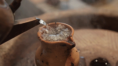 第一杯茶需要将小茶罐放于火盆上细心烘烤,再放入适量的茶叶,在抖动颠簸中让茶叶加热、变黄,散发阵阵清香。然后注入沸水,因为响动大,又被称为“雷响茶”。第一杯茶闻起来清香,入口带着青涩的苦味。