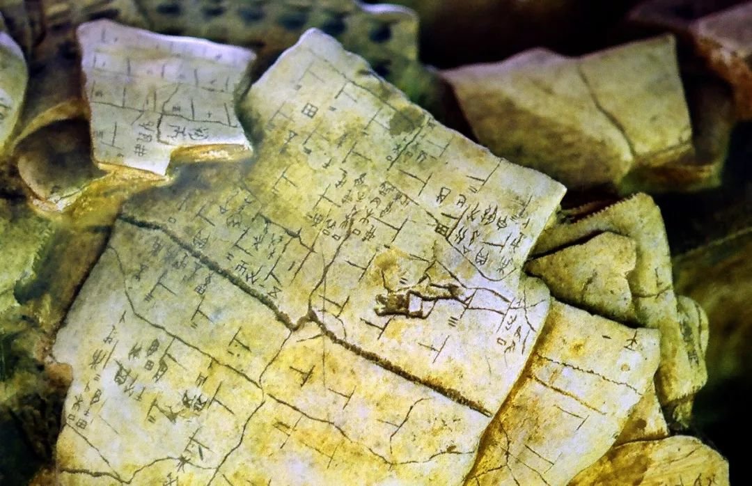 图为从殷墟遗址甲骨窖穴内发掘出土的刻有文字的龟甲。新华社记者 王颂 摄