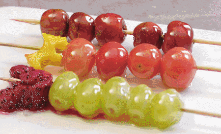 清代杂记《燕京岁时记》中有载:“京师食品亦有关于时令……冰糖葫芦乃用竹签,贯以葡萄、山药豆、海棠果、山里红等物,蘸以冰糖,甜脆而凉。”也就是说,清代开始,人们就开始尝试“冰糖”多种类型的食物了。