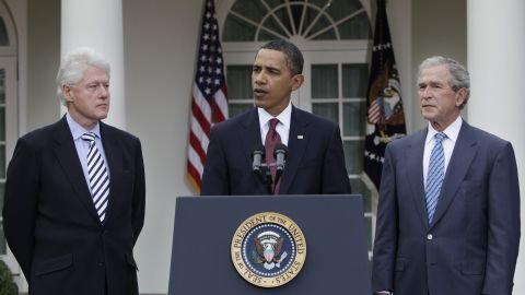 美国前总统比尔·克林顿(左)、巴拉克·奥巴马(中)、乔治·沃克·布什(右) 图源:外媒