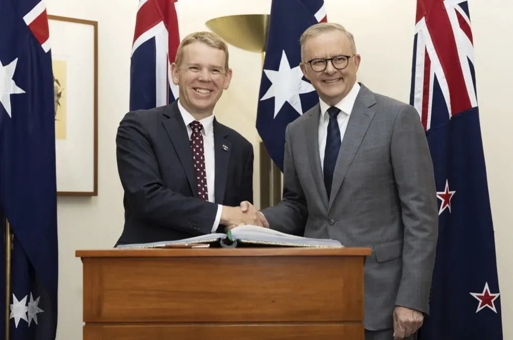 当地时间2月7日,新西兰总理希普金斯(左)与澳大利亚总理阿尔巴尼斯(右)在澳大利亚首都堪培拉会面 图源:《布里斯班时报》
