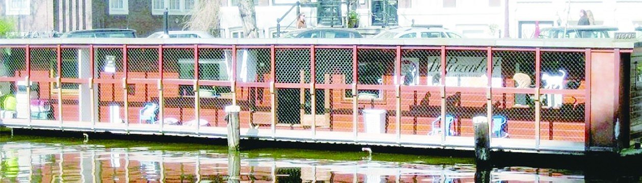 荷兰首都阿姆斯特丹中央火车站附近的运河上有一艘特别的船,周围用铁丝网围起来,而且在此地停了50多年。它就是大名鼎鼎的“猫船”(如图)。
