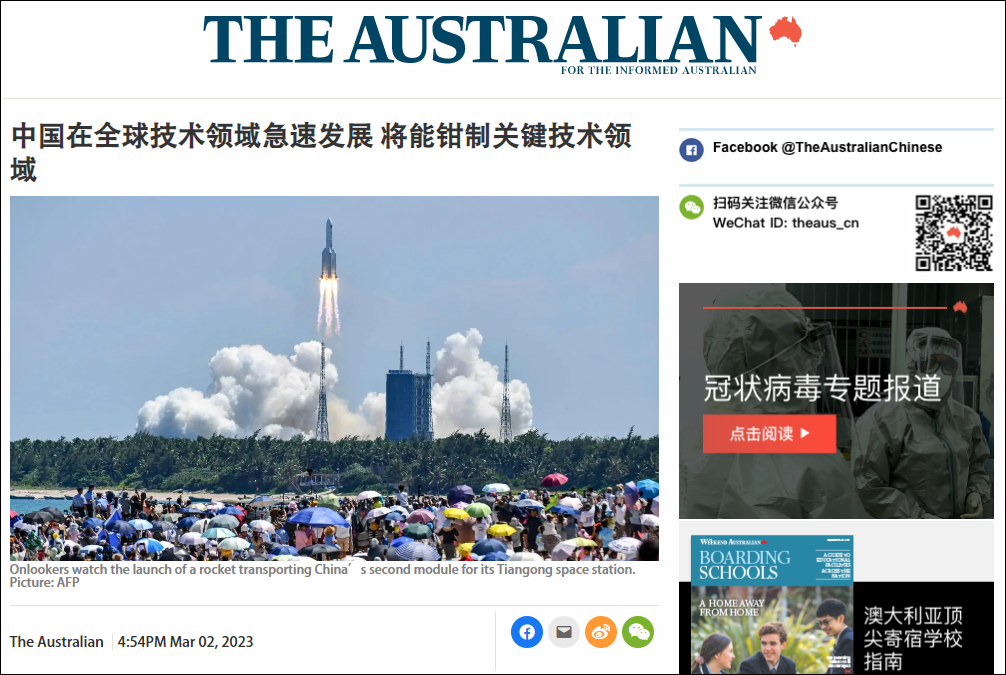 借此报告,ASPI渲染“西方民主国家”在全球研究竞争中失利,敦促各国政府加大研究投资。而澳媒《澳大利亚人报》也据此报告声称,在全球科技领域,中国正朝着超越西方的方向“急速发展”,将引发其很快会钳制某些最关键技术供应的担忧。