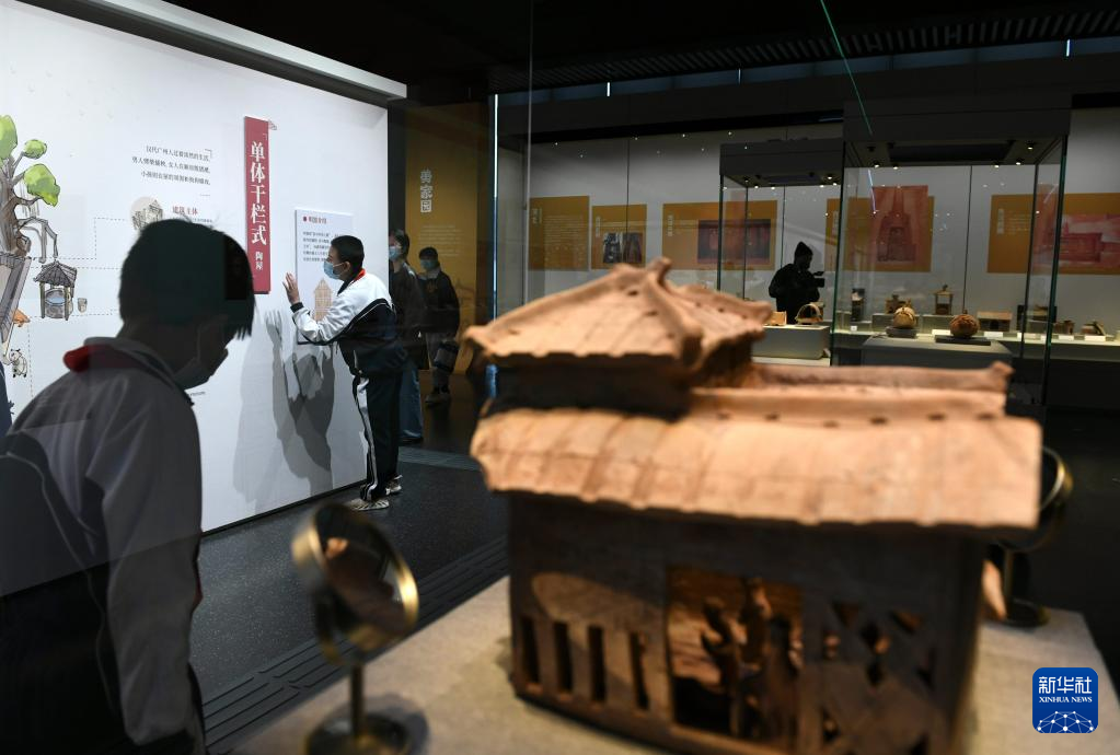 3月29日,参观者在“羊城烟火气——广州出土汉代建筑模型明器展”现场参观。