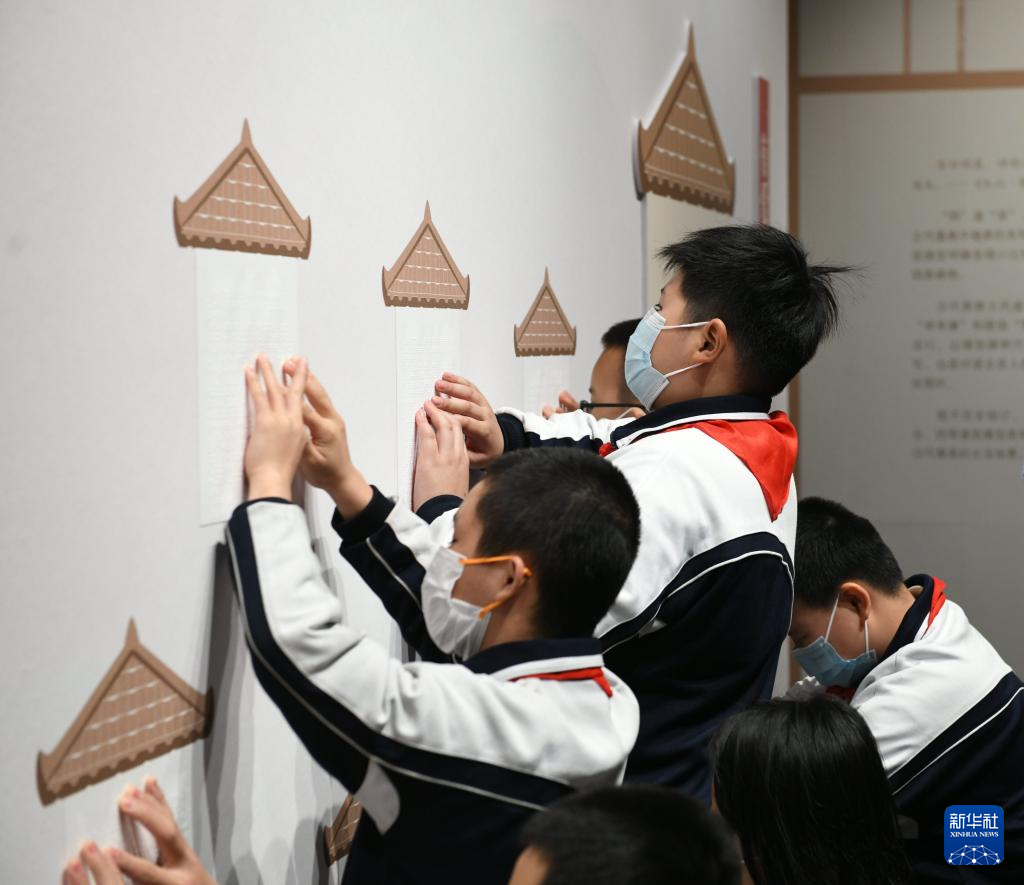 3月29日,视障学生在展览现场通过盲文以及可供触摸的文物模型和五感体验盒等观展。