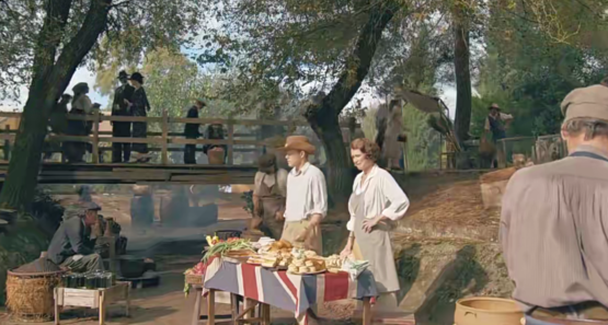 路易斯开垦了一块地,带孩子们种粮食蔬菜、养羊养蜂;她还做了奶酪、布丁,带着二儿子一起去市场售卖……