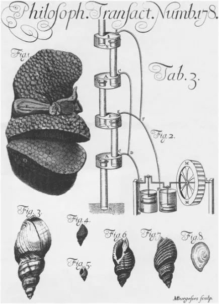 科尔写给牛津信件的配图。其中右下方的图6与图7被认定为犬峨螺(Nucella lapillus),与红口岩螺、染料骨螺同为骨螺科(Muricidae)物种,生活在欧洲与大西洋东北岸 | 参考文献5