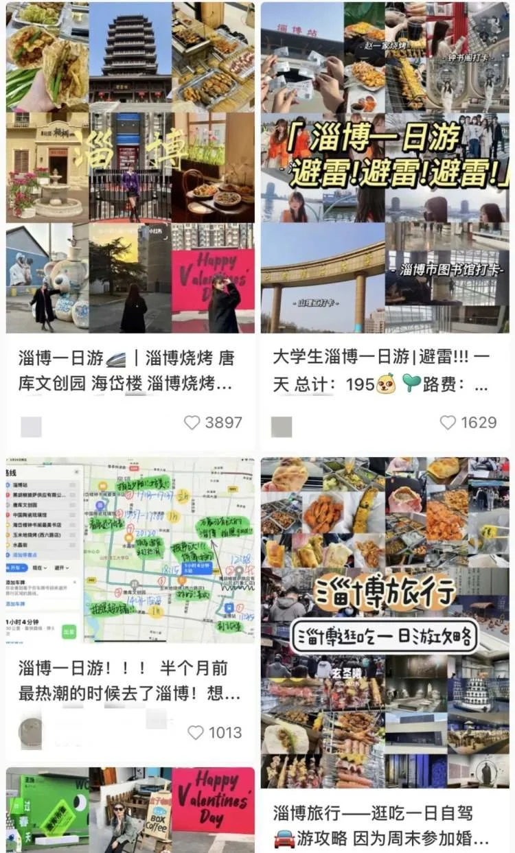 △淄博烧烤火了,到处都是淄博旅行攻略。/小红书截图