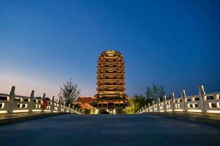 △落日下的淄博海岱楼。/图虫创意