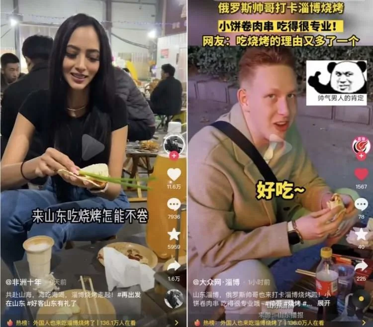 △淄博烧烤,让外国人也食指大动。/抖音截图