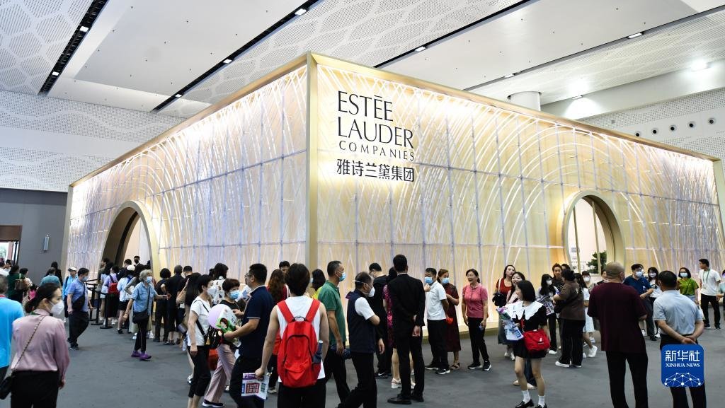 4月15日拍摄的消博会雅诗兰黛集团展台。新华社记者 杨冠宇 摄