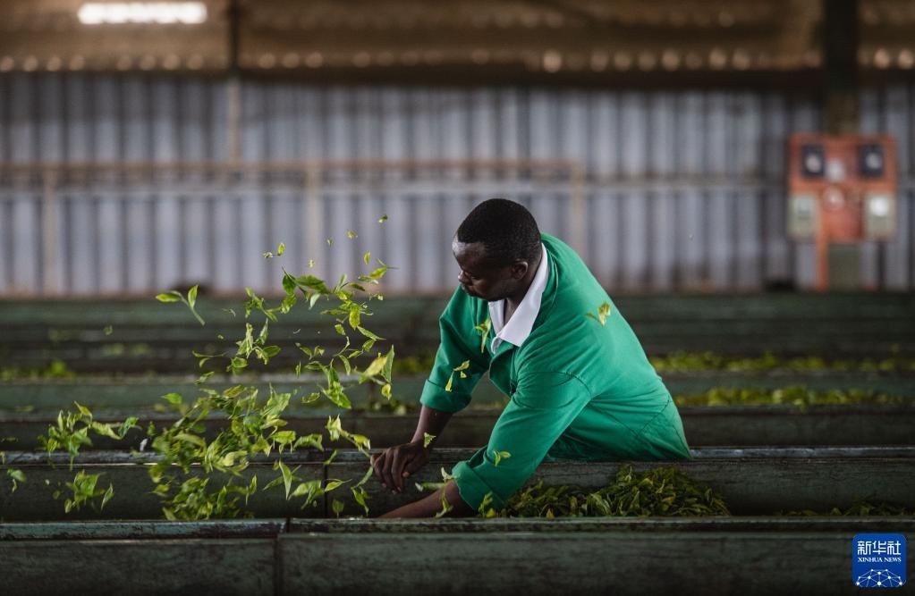 这是2023年5月4日,工人在肯尼亚首都内罗毕附近的茶厂里工作。