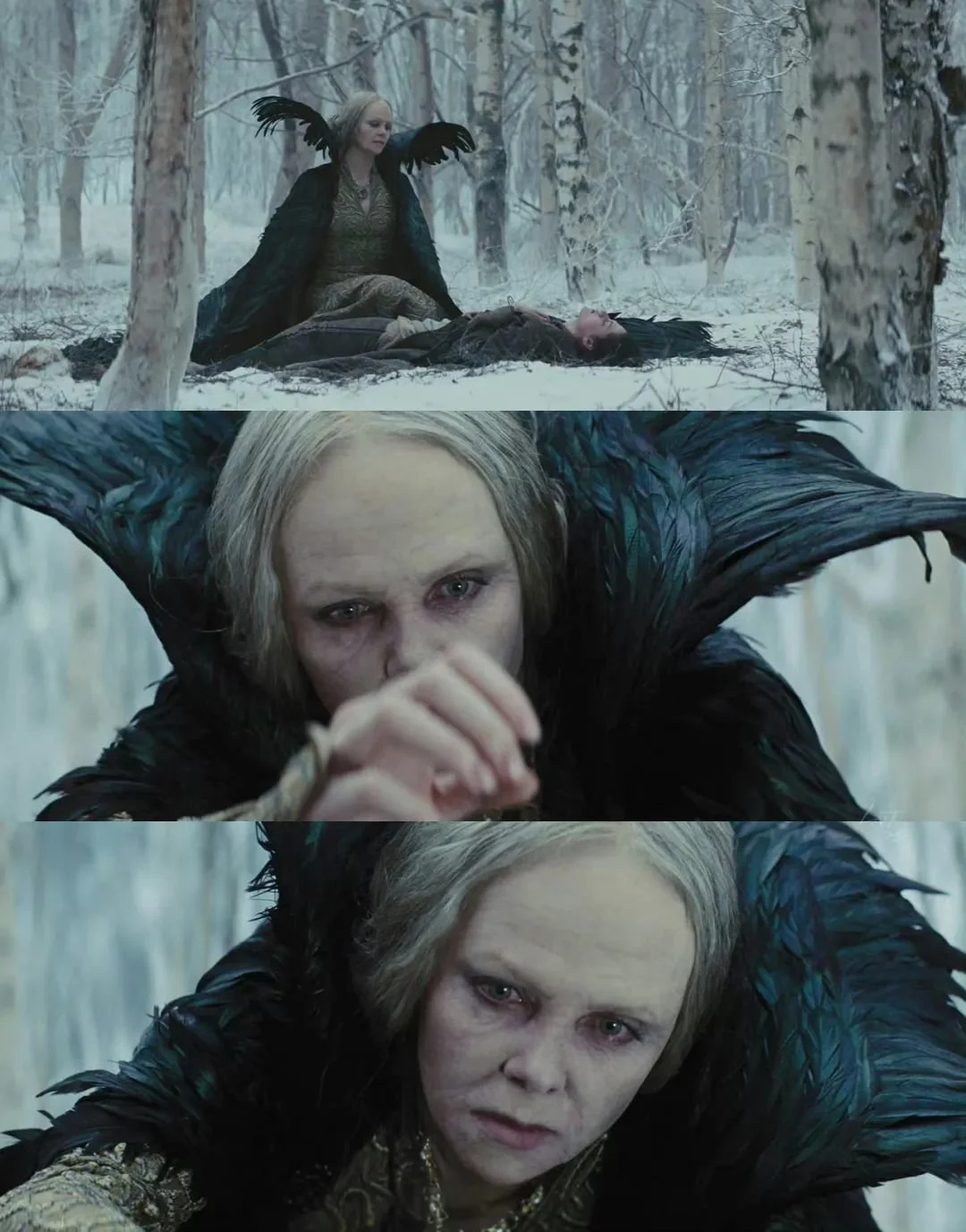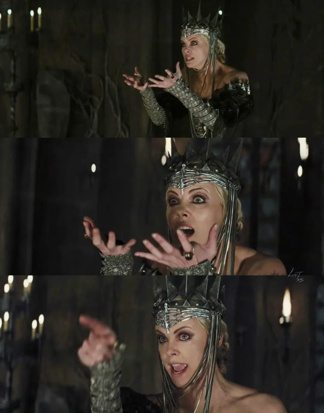 “白雪公主”的后妈由女神查理兹·塞隆(Charlize Theron)出演,导演在采访中说道:他非常喜欢塞隆身上的黑暗气质。