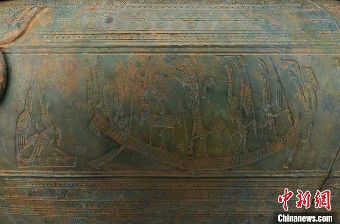 关于纹饰,中国港口博物馆学术研究部主任李永歌表示,目前学术界主要有两种解读:一是表现海战后凯旋;二是描绘战争胜利后人们乘坐龙舟,以舞蹈、献祭等方式祭祀神灵的场景。