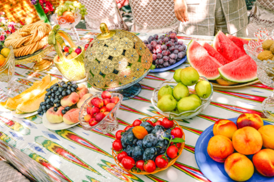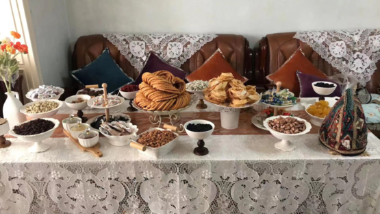 古尔邦节家宴美食中,新鲜牛羊肉是绝对的餐桌霸主,而作为全年最盛大的节日,待客茶几上的糕饼、瓜果、凉菜小吃,也个个大有来头,大有将新疆传统美食一网打尽之势。