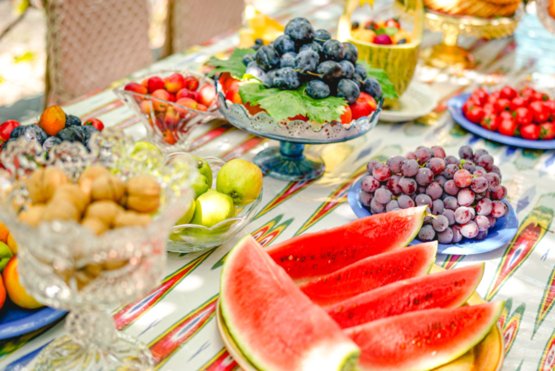 应季的新鲜水果,要看古尔邦节当年的具体月份。拿今年来讲,刚好就包括小白杏、红杏、西瓜,新疆过于强大的昼夜温差,赋予水果极高甜度。小白杏皮薄肉多、红杏软绵细腻、西瓜清甜爽脆,总有一种适合你,就算都不喜欢,还有全季供应的各色干果。