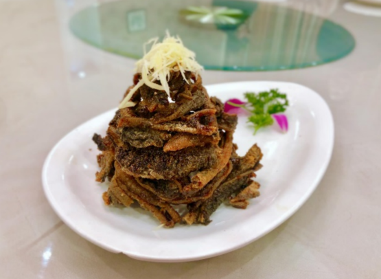 对肉比较少的小鳝鱼来说,油炸是最适合它的烹饪方式。无锡的传统宴席上,必有一盘“梁溪脆鳝”,盘中炸过的鳝鱼堆成一座宝塔的形状,顶上点缀着一撮姜丝。传统的梁溪脆鳝不用裹淀粉,而是将鳝鱼丝直接下油锅炸两次,火候至关重要,稍大会焦,稍小则不够酥脆。炸好的脆鳝浇上甜中带咸的秘制酱汁,吃起来分外爽口。